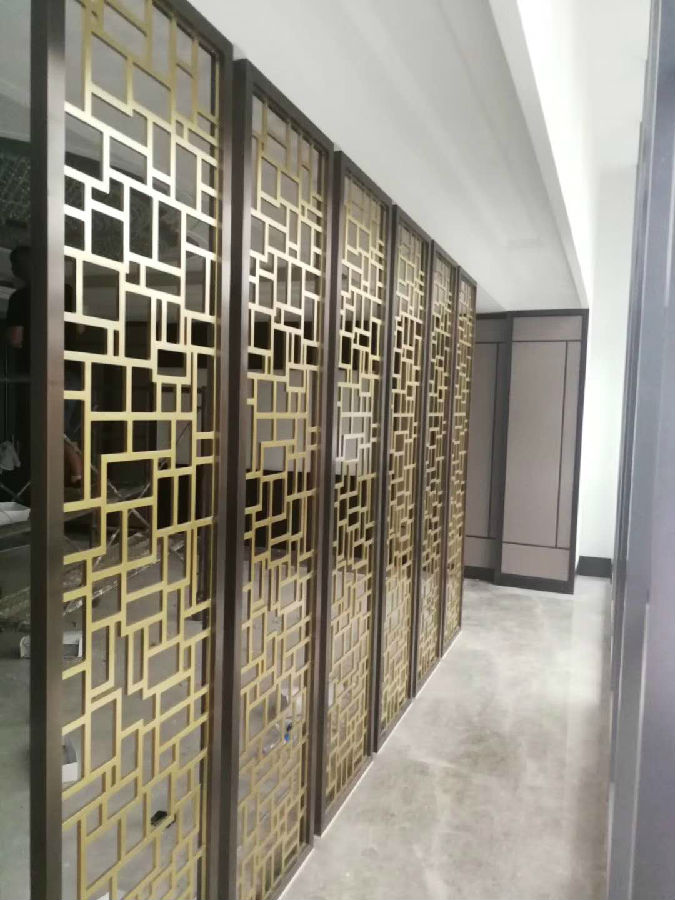 2、比較流行的客廳銅藝隔斷材料有木制、布藝、絹質、鐵藝、藤編、竹編等等,有的隔斷雕龍畫鳳,質感厚重,擺在廳中自然有了一種威嚴的氣氛。有的輕紗若隱若現(xiàn),配上原木的框架,讓飯店多了一絲柔情蜜意。