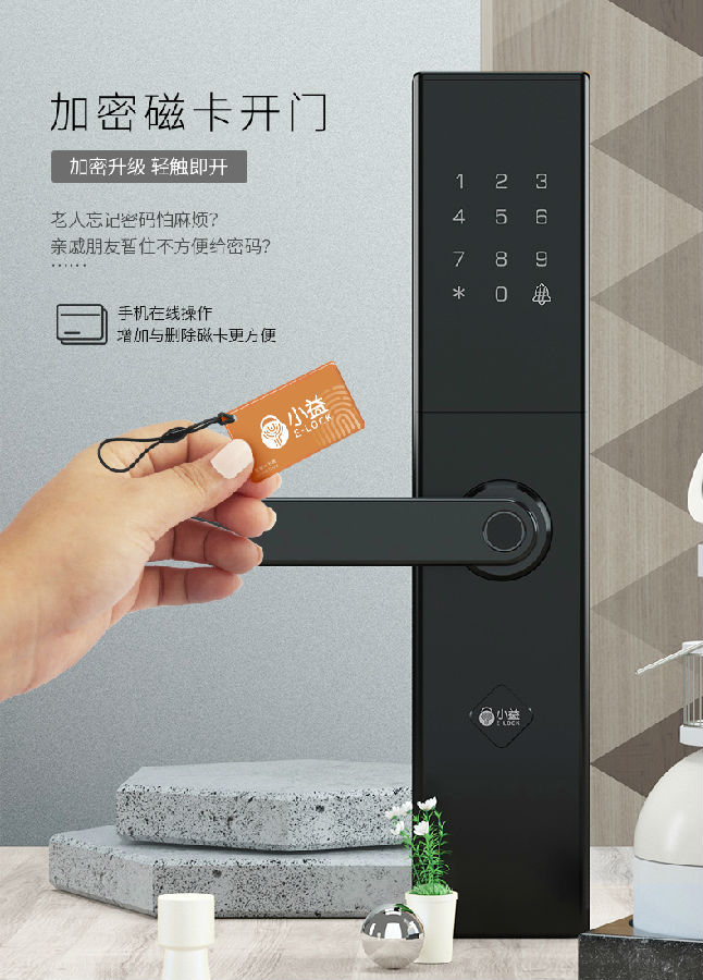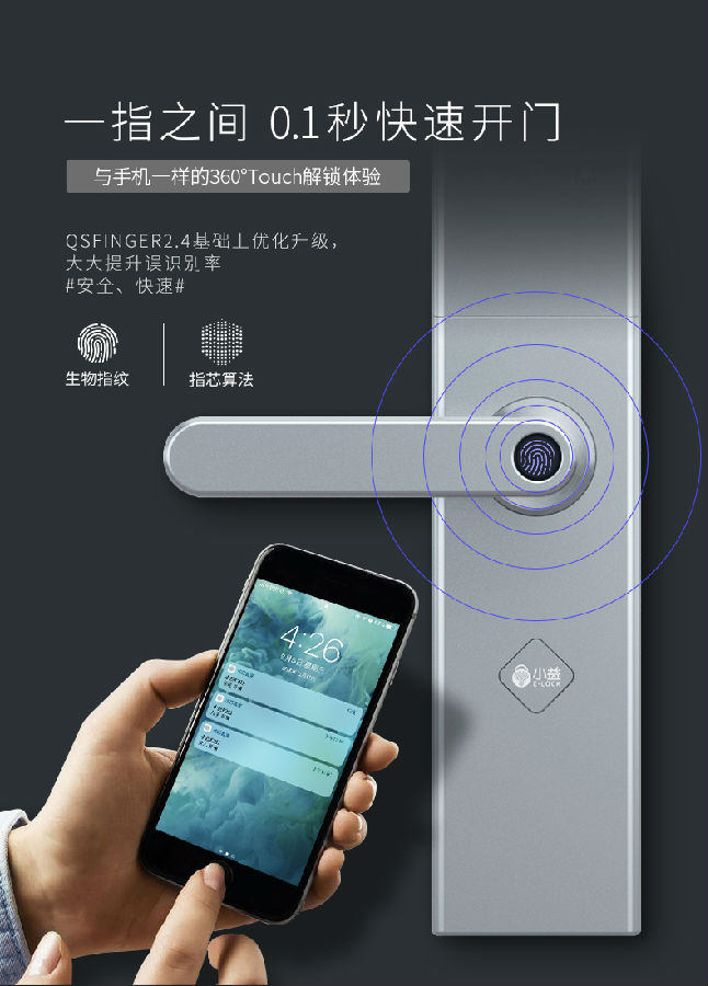 小益E205 家用防盜門指紋鎖 遠(yuǎn)程全自動通用型大門電子密碼智能鎖