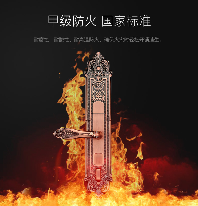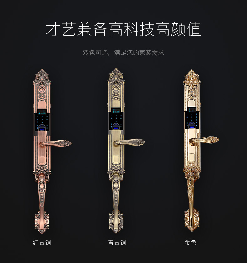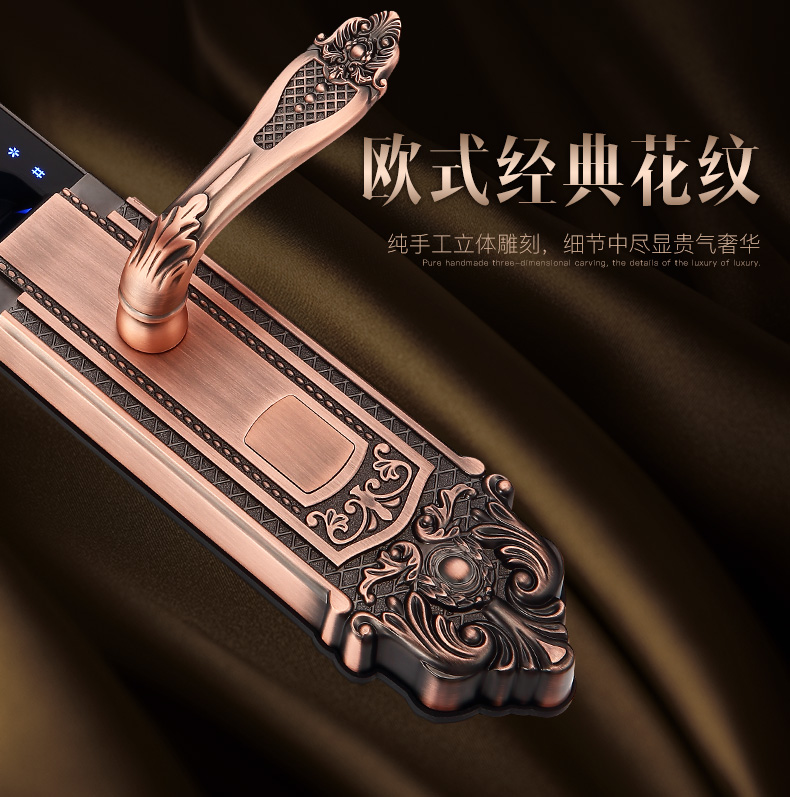 黑龍HERON 指紋密碼電子智能門鎖防盜門歐式豪華別墅雙開門 紅古銅+手動滑蓋