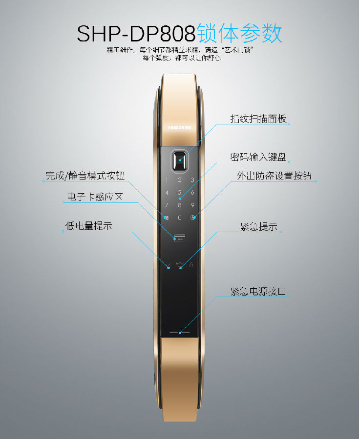 三星(samsung) 指紋鎖密碼家用防盜門智能電子鎖新款SHP-DR708