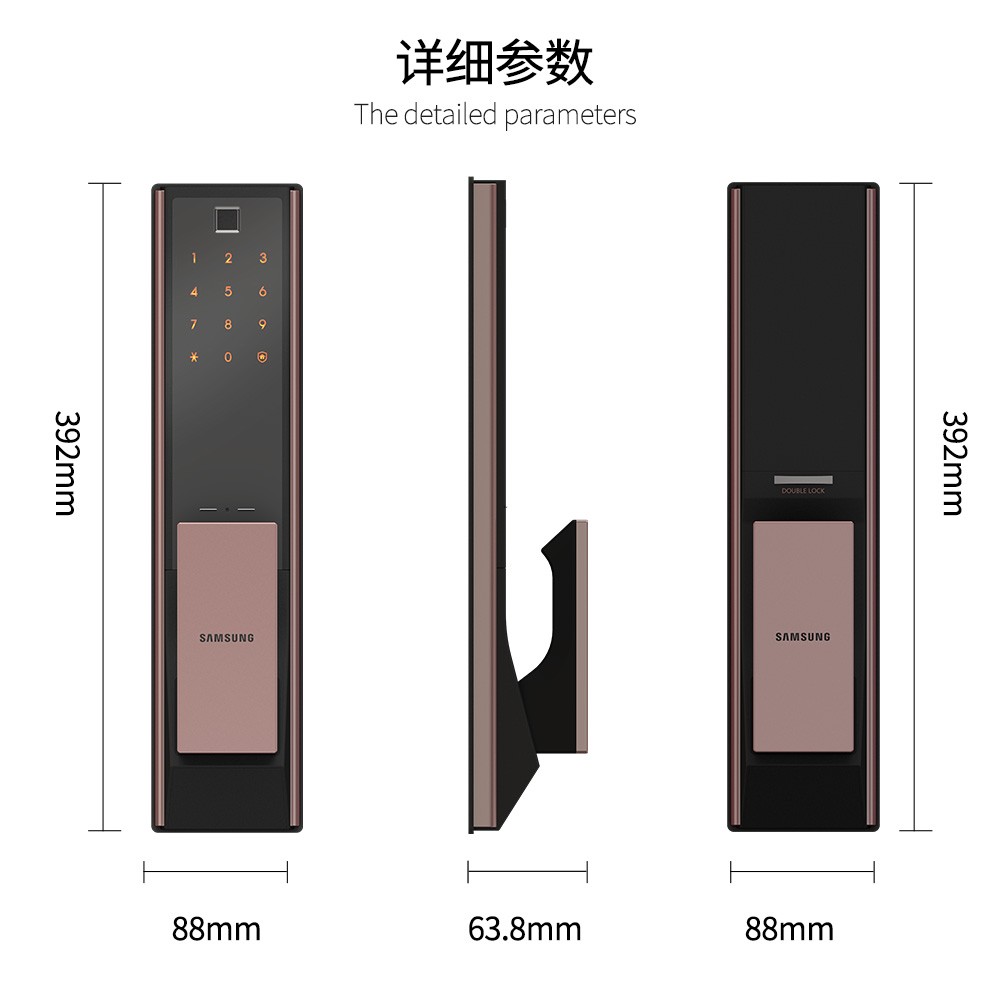 三星(samsung) 指紋鎖 密碼家用防盜門智能電子鎖新款SHP-DP738 紅古咖啡色