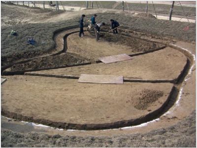 2.發(fā)球臺(tái)。發(fā)球臺(tái)是每個(gè)球道擊球的開始,一個(gè)球道常包括3個(gè)遠(yuǎn)近不同的發(fā)球區(qū),分別為女發(fā)球區(qū)(比男發(fā)球區(qū)接近果嶺20%)、男發(fā)球區(qū)及比賽發(fā)球區(qū)(位于開球區(qū)后離果嶺最遠(yuǎn)處),有時(shí)也將3個(gè)發(fā)球場(chǎng)合并成一個(gè)大的發(fā)球區(qū)。發(fā)球區(qū)應(yīng)高于四周地勢(shì),以利于雨天排水。發(fā)球臺(tái)的形狀多種多樣,以長(zhǎng)方形,正方形、橢圓形為常見.另外還多用半圓形、圓形、S形、L形等?!忝娣e為30—150平方米,較周圍高O.3~1.0米.以利于排水并增加擊球者的可見性,表面為修剪過(guò)的短草,要求草坪有一定堅(jiān)硬度且表面光滑。發(fā)球臺(tái)面積雖小,但受到的跟蹤程度很重,要求地表水能迅速排除,從發(fā)球角度考慮又應(yīng)有—定的平整度,一般取l%--2%的微坡度。