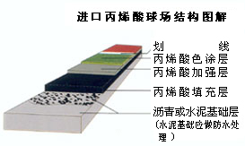 這是一種現(xiàn)場(chǎng)澆鋪用刮板制作在瀝青混凝土上或鋼盤混凝土結(jié)構(gòu)地面上的新型材,其工藝主要分為找平結(jié)合層、加強(qiáng)層、耐磨層等多層做法,還有含膠粒的多層做法這種面層材料及工藝的優(yōu)點(diǎn)是平整度高、表面硬度高、耐磨、抗曬、色澤鮮艷、使用壽命長(zhǎng)便于管理和維修。這種面層材質(zhì)穩(wěn)定的籃球場(chǎng),球員場(chǎng)上跑動(dòng)舒服,是一種既可供娛樂(lè)打球也可用做正規(guī)比賽的高檔次籃球場(chǎng)地。