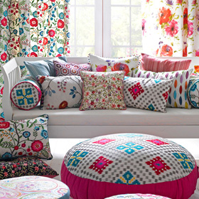 Our vibrant inhouse design studio is renowned for creating imaginative designs, each one hand drawn or painted. We specialise in watercolour painting, a style which allows us to express ourselves in a truly unique way. We use print, embroidery, weave, woven velvet and British wool to enhance our look. Designs are printed in our own printworks on natural Scottish linen allowing us to capture every detail and lively hue by retaining the quality of the original paintings.